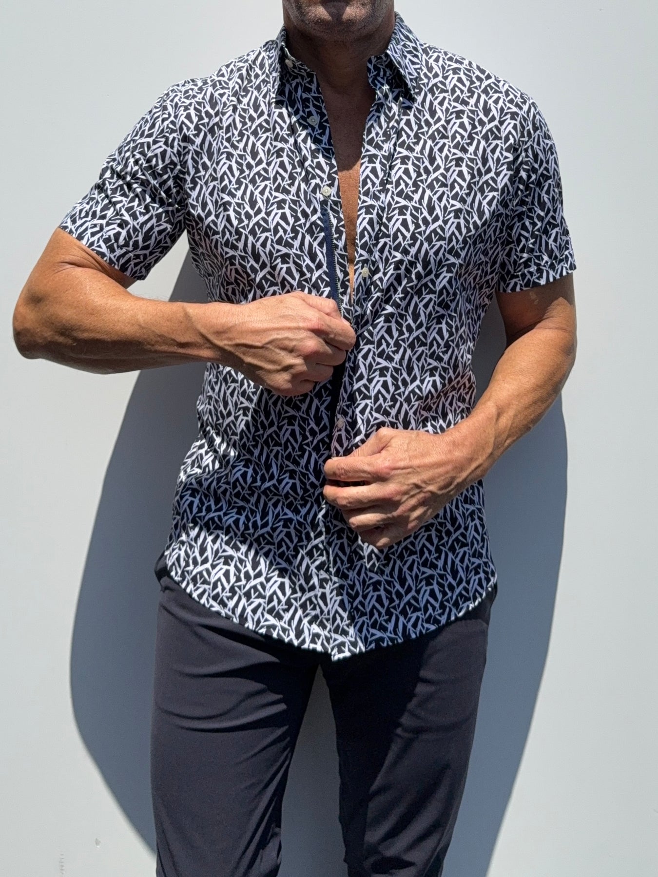 The shirts in our Small Batch Party Series are custom prints made exclusively for Teddy Stratford. The Botanical Abstract Party Shirt was made from a lightweight 100% cotton broadcloth that is the perfect weight for the warmer months.