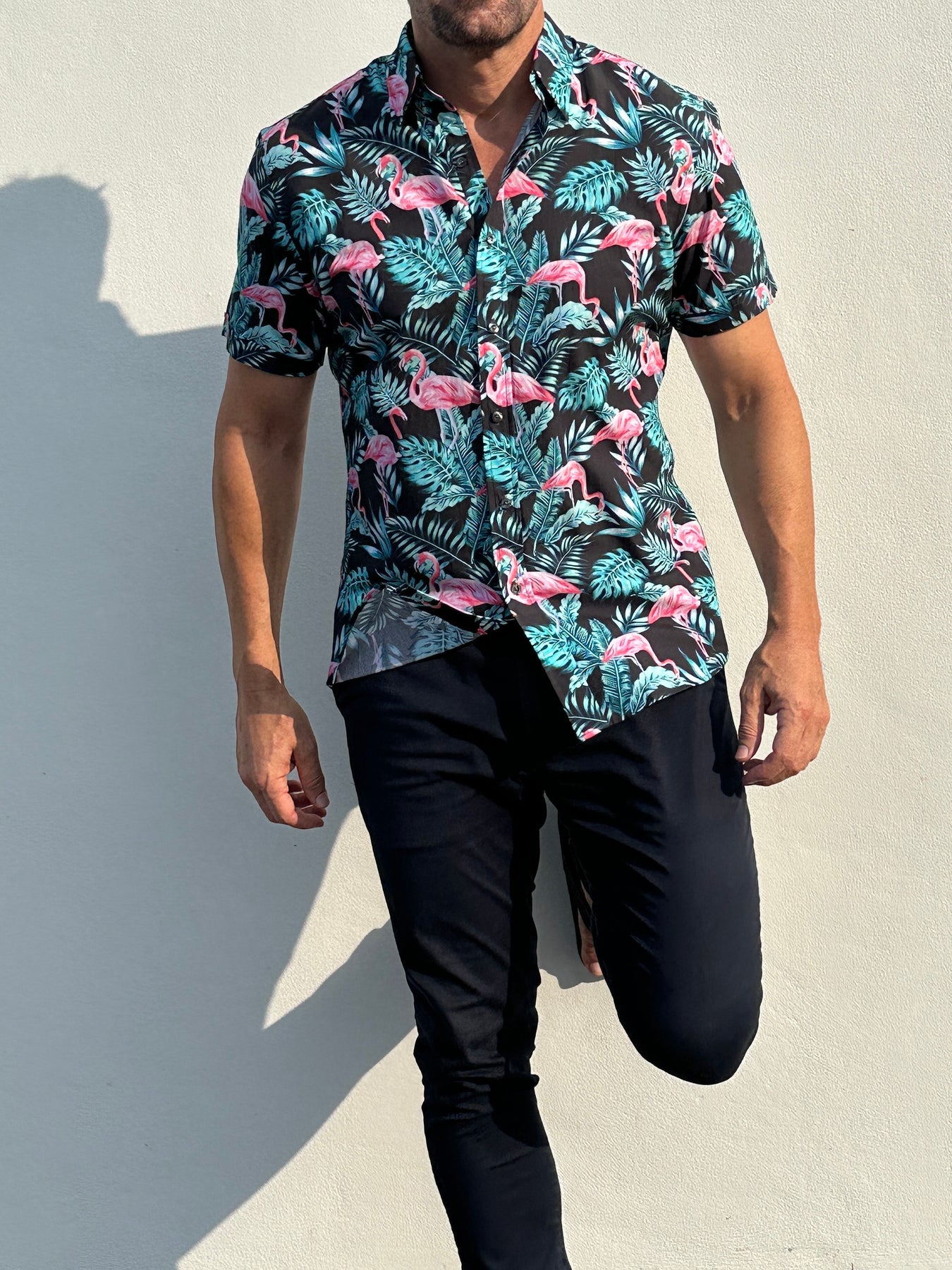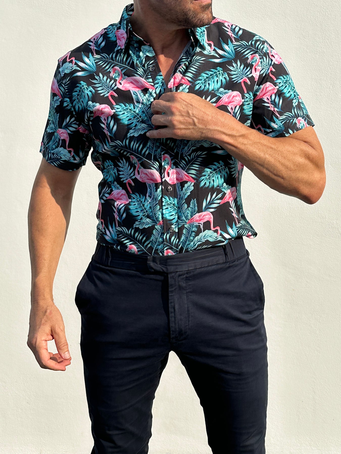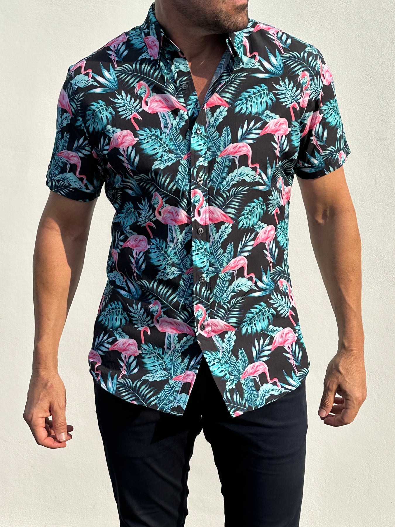 The shirts in our Small Batch Party Series are custom prints made exclusively for Teddy Stratford. The Flamingo Party Shirt was made from a lightweight 100% cotton broadcloth that is the perfect weight for the warmer months.