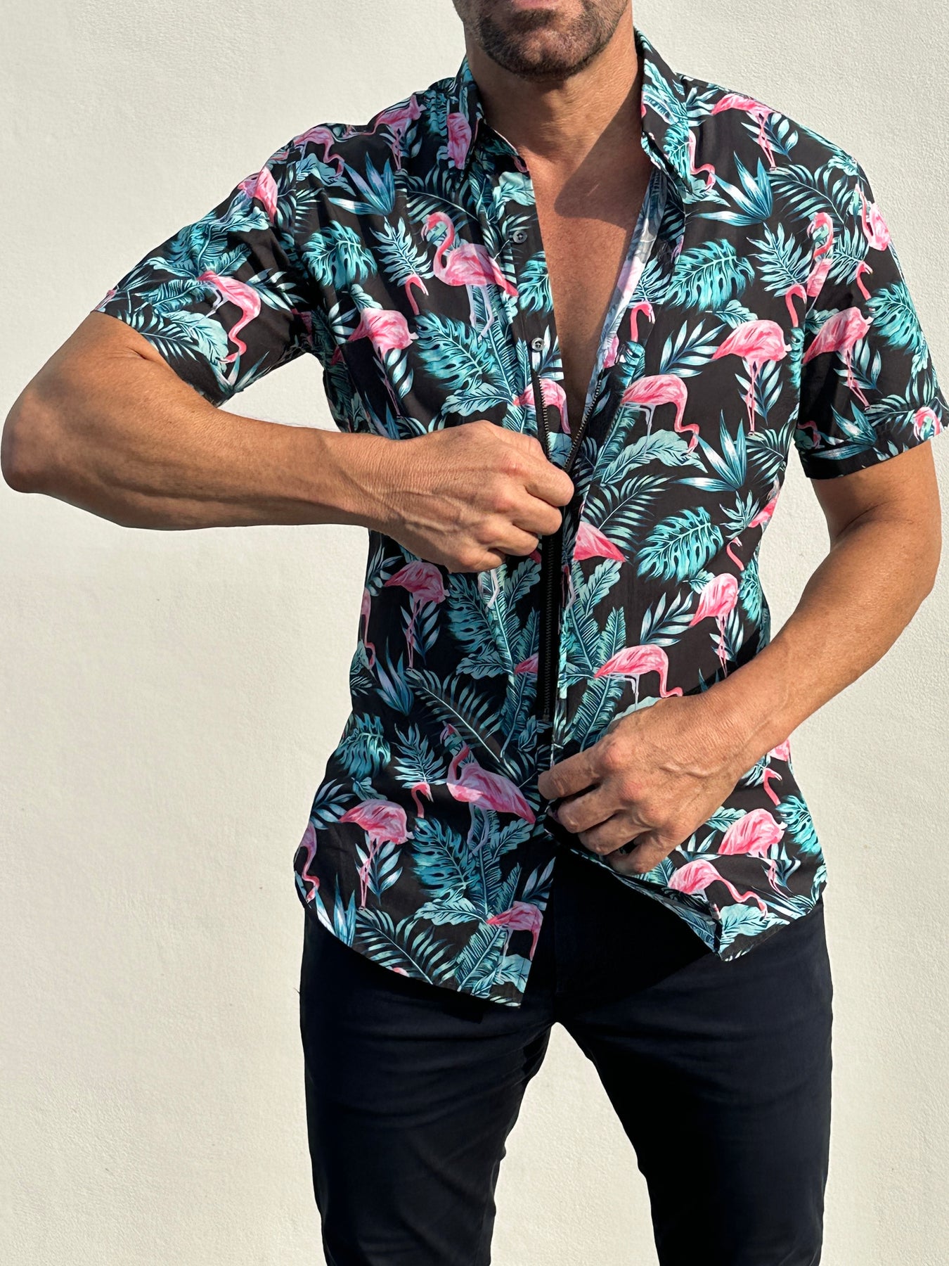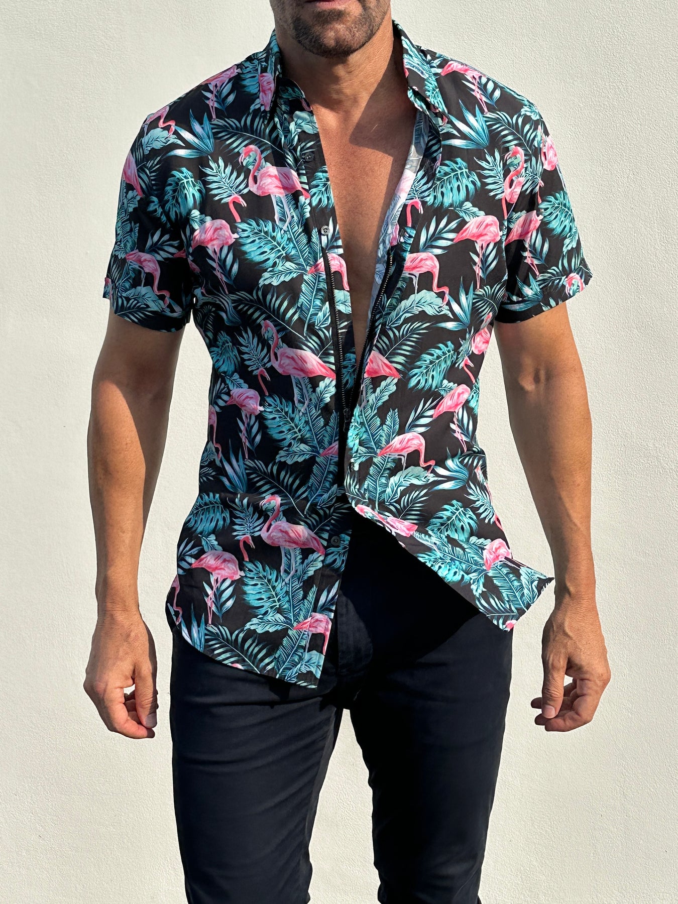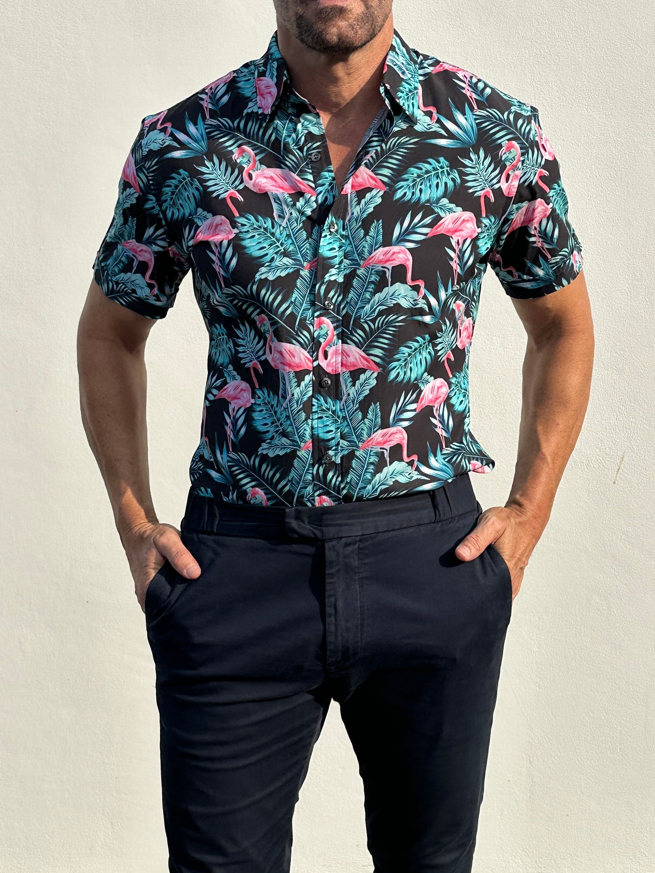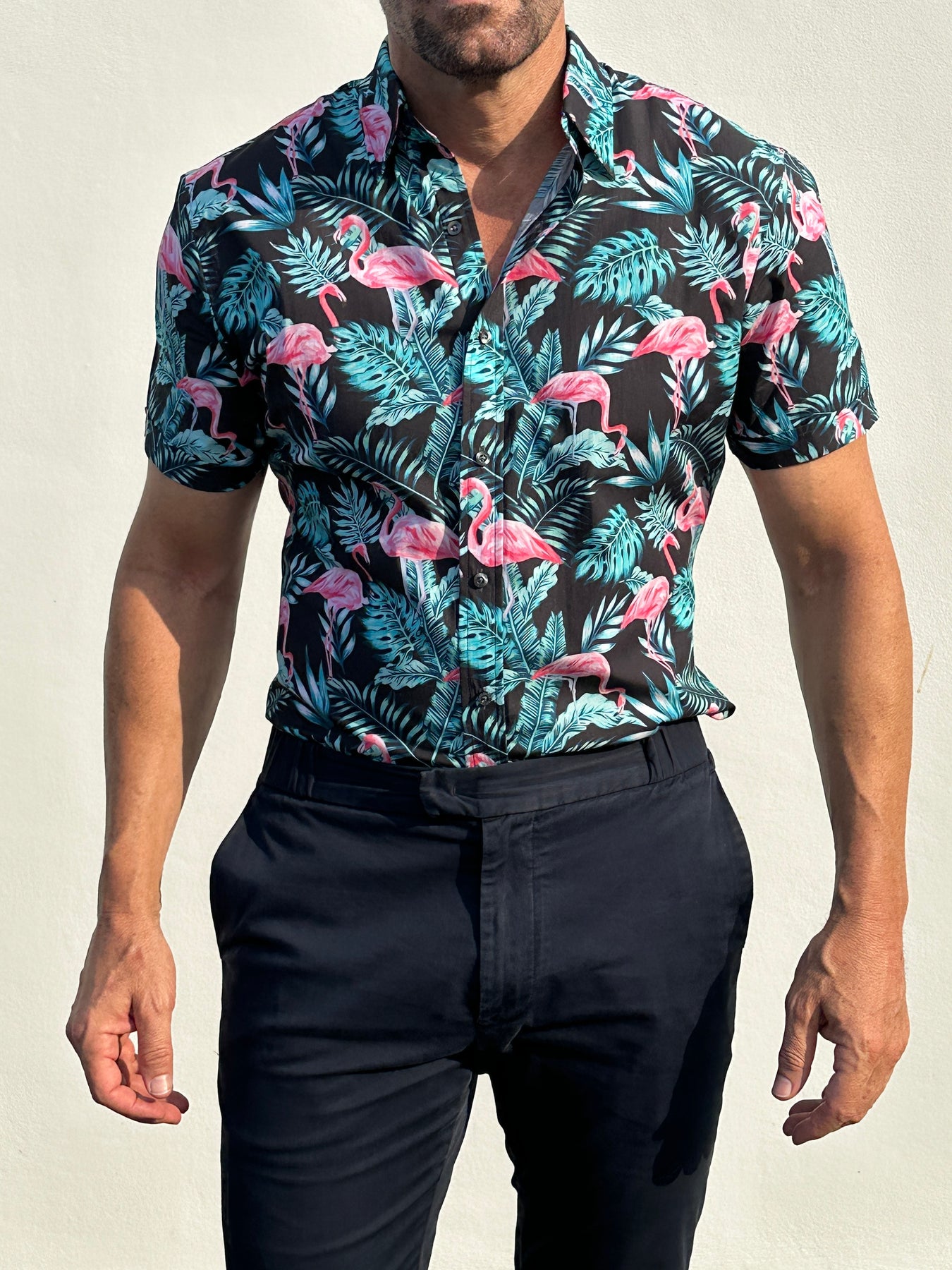 The shirts in our Small Batch Party Series are custom prints made exclusively for Teddy Stratford. The Flamingo Party Shirt was made from a lightweight 100% cotton broadcloth that is the perfect weight for the warmer months.