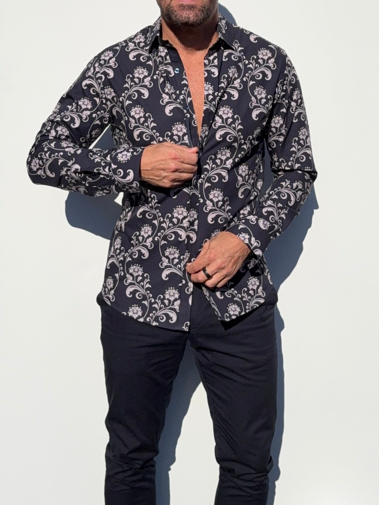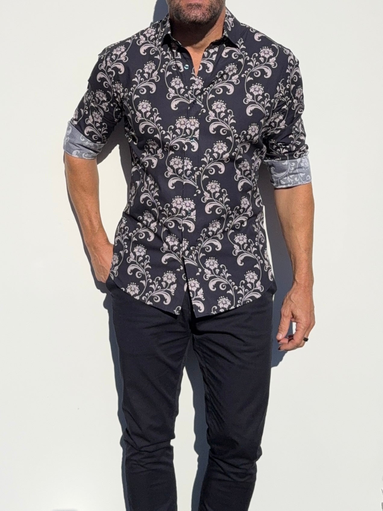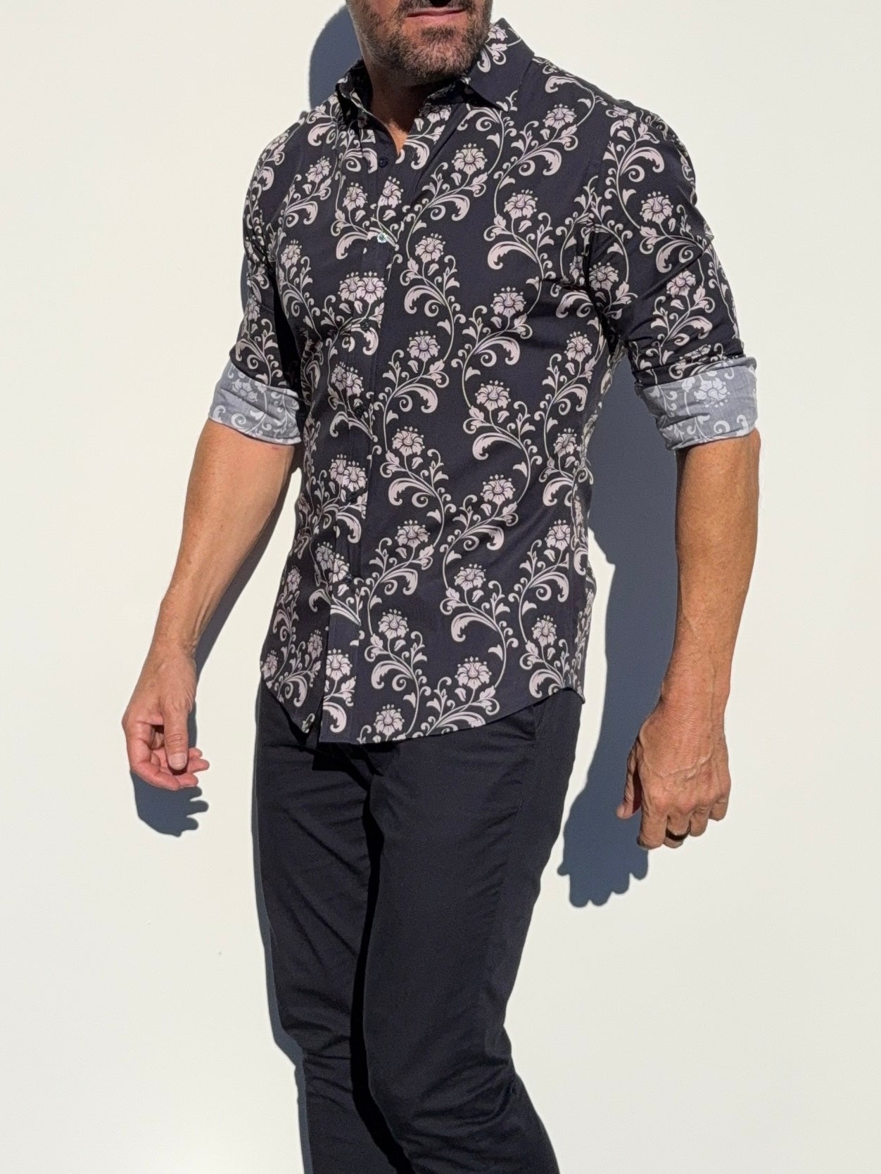 Our shirts taper toward the midsection and fit close to the body.