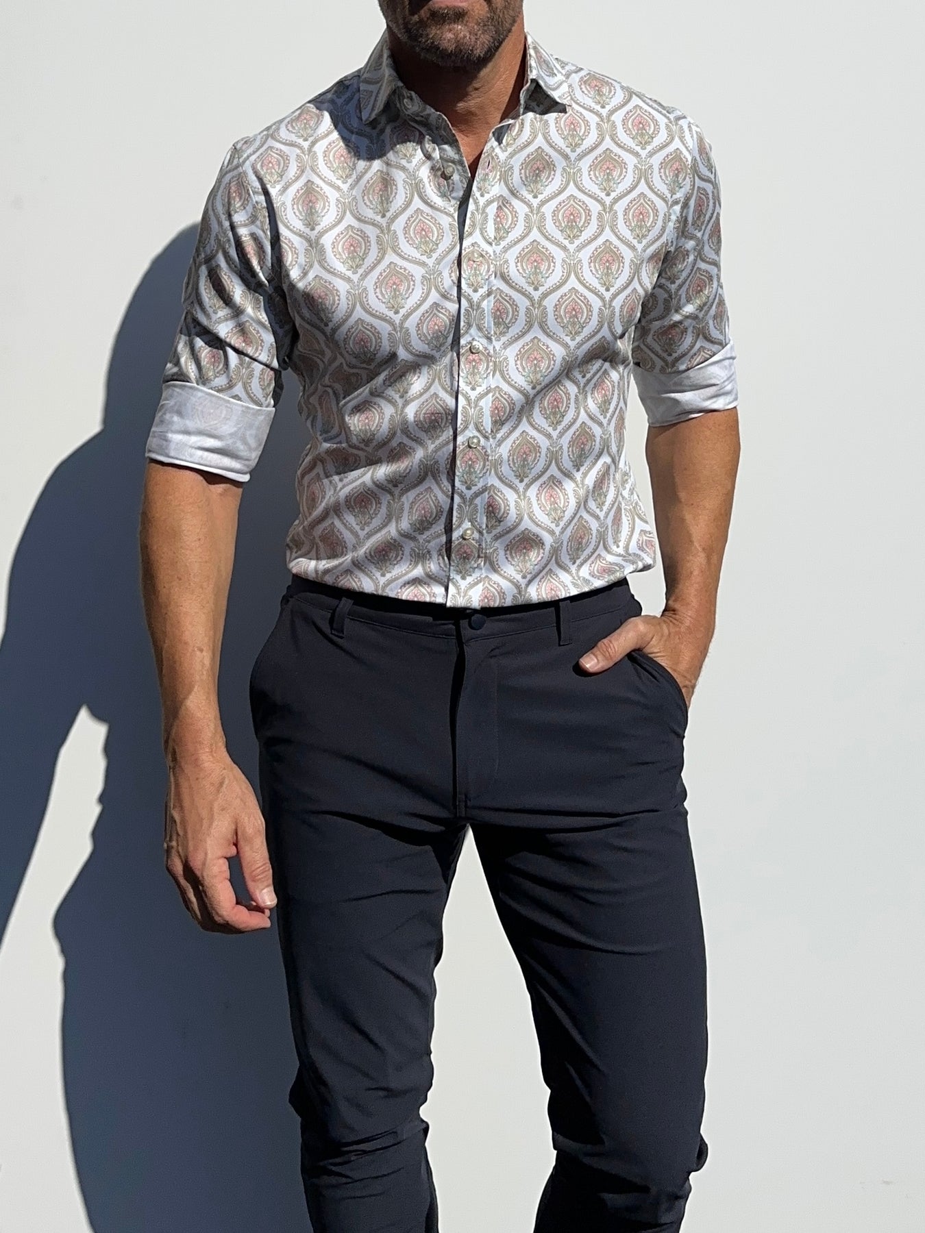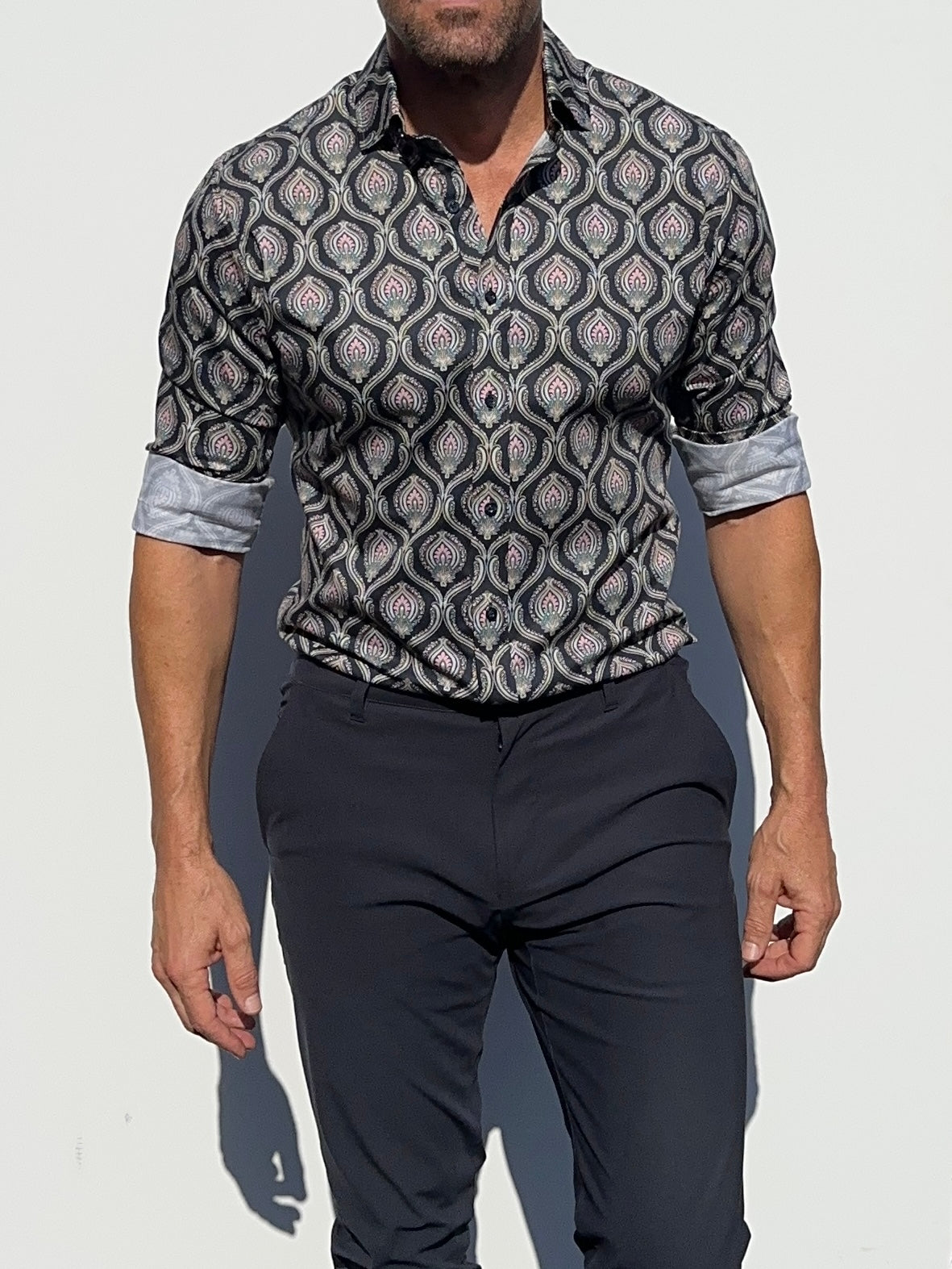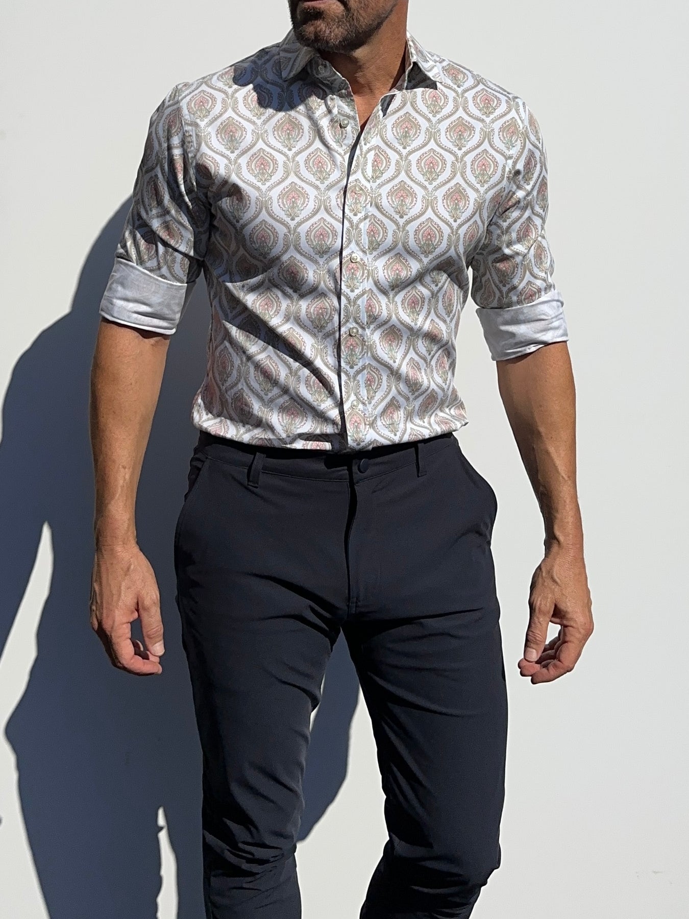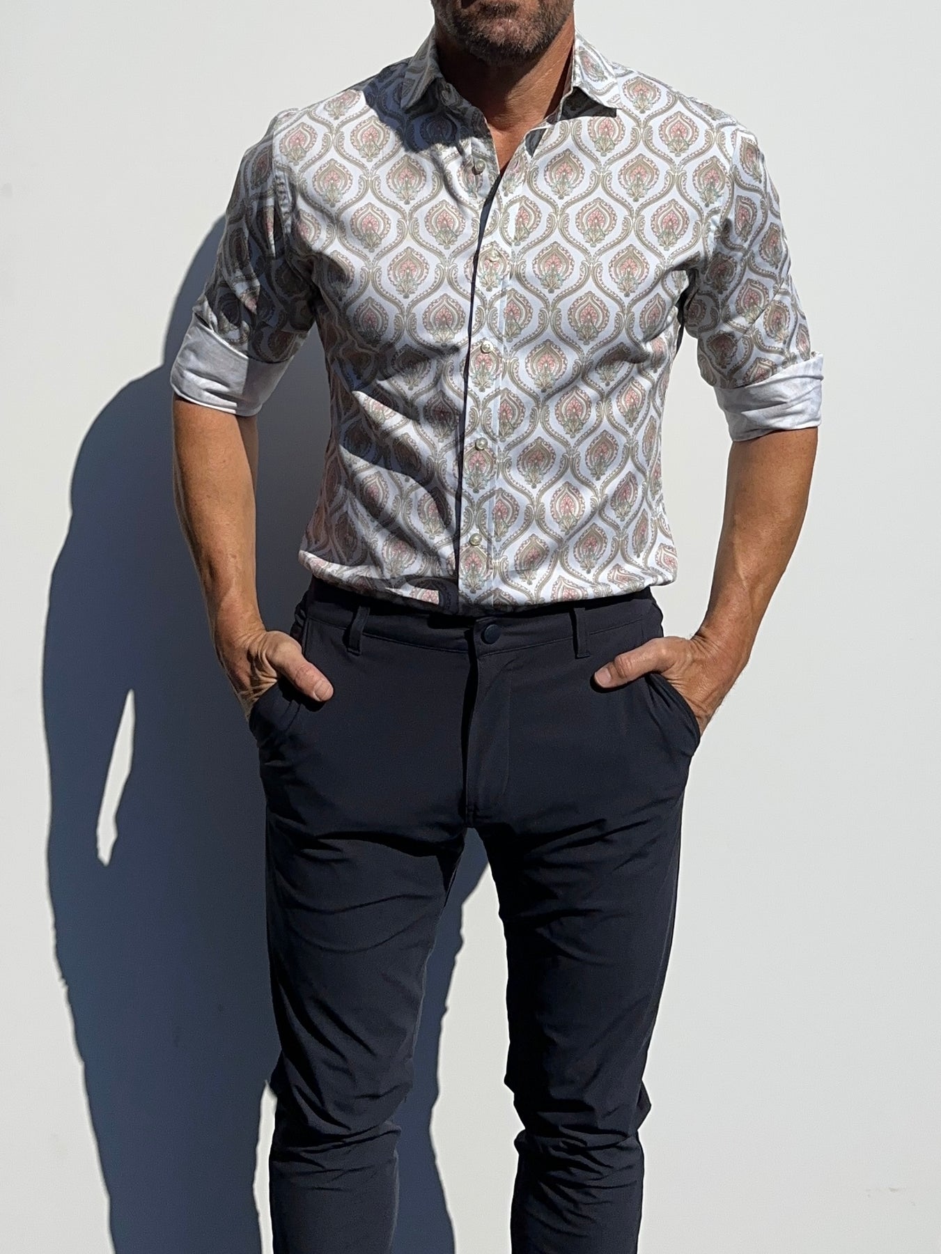 We studied the archetypal male form to find the ideal ratio between shoulders, chest, waist and hips and built our shirt around it. The zipper evenly distributes any tension and allows you to wear a closer fitting shirt, without looking like you're busting out of it.