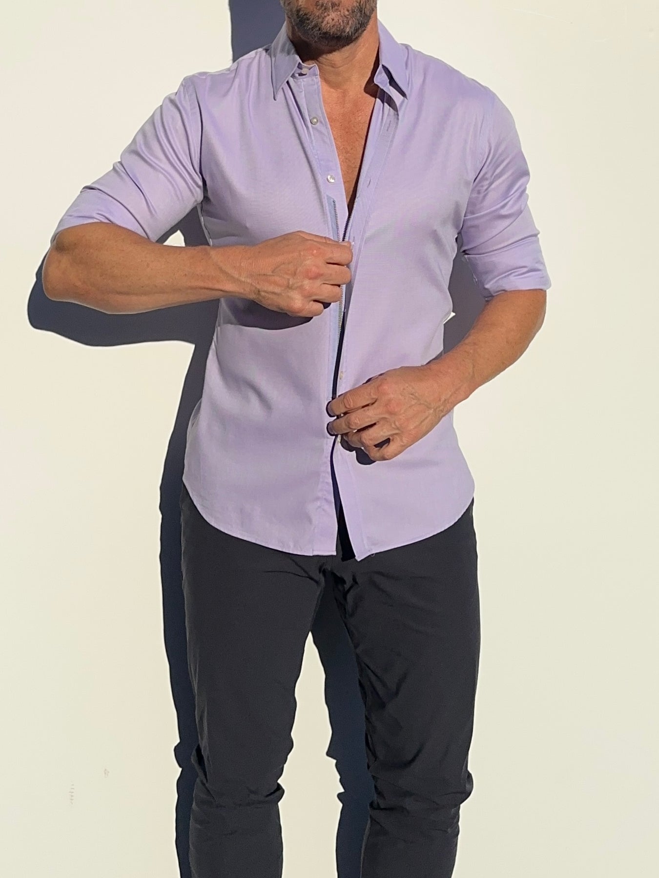 We studied the archetypal male form to find the ideal ratio between shoulders, chest, waist and hips and built our shirt around it. The zipper evenly distributes any tension and allows you to wear a closer fitting shirt, without looking like you're busting out of it.