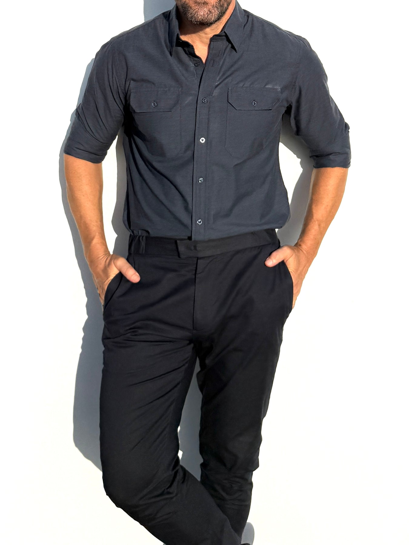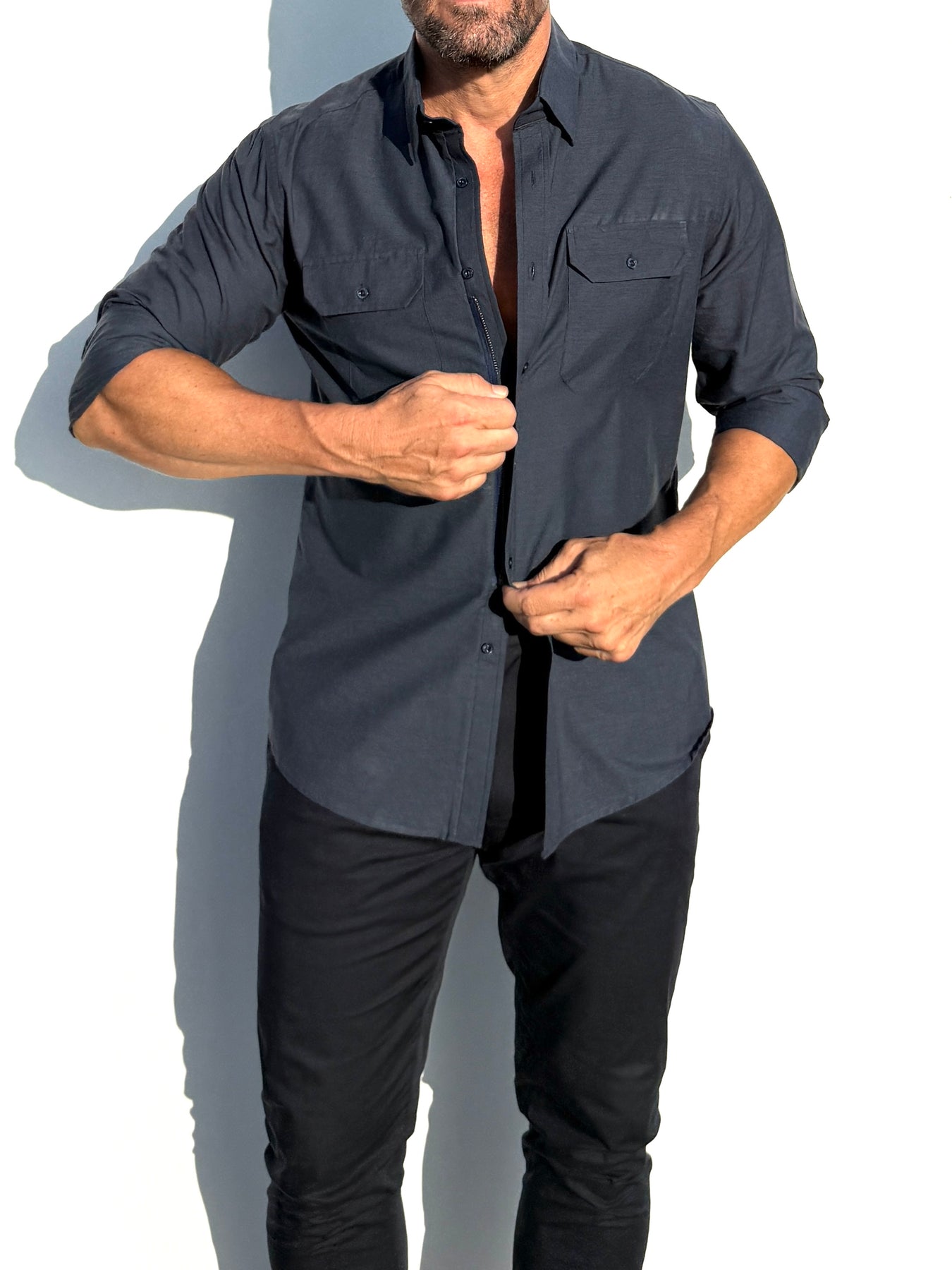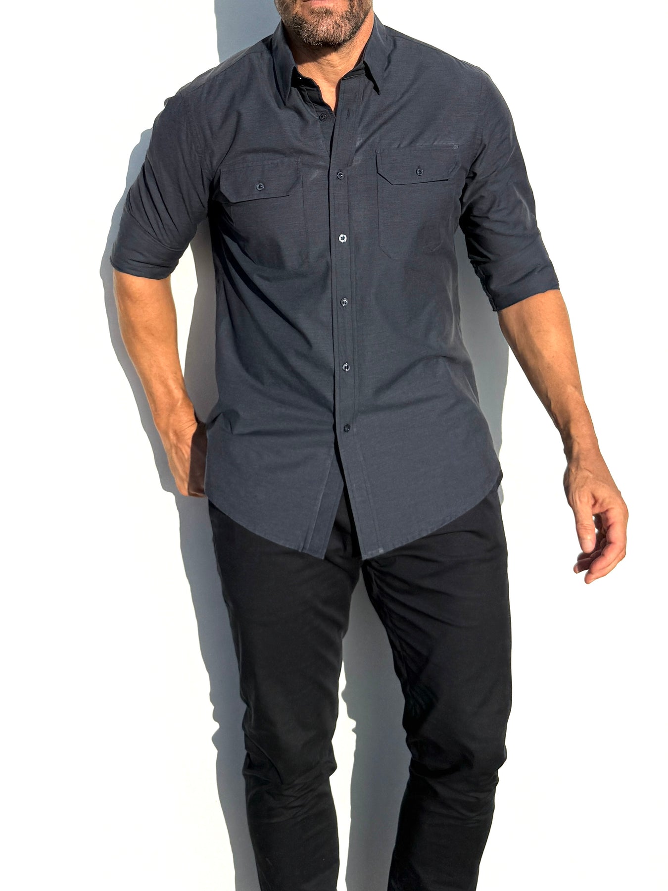 The Relaxed-fit Utility Shirt: Made with some ease built into the waist & hips- 3 inches & 1 inch respectively- our Utility Shirt is decidedly casual for a premium shirt.