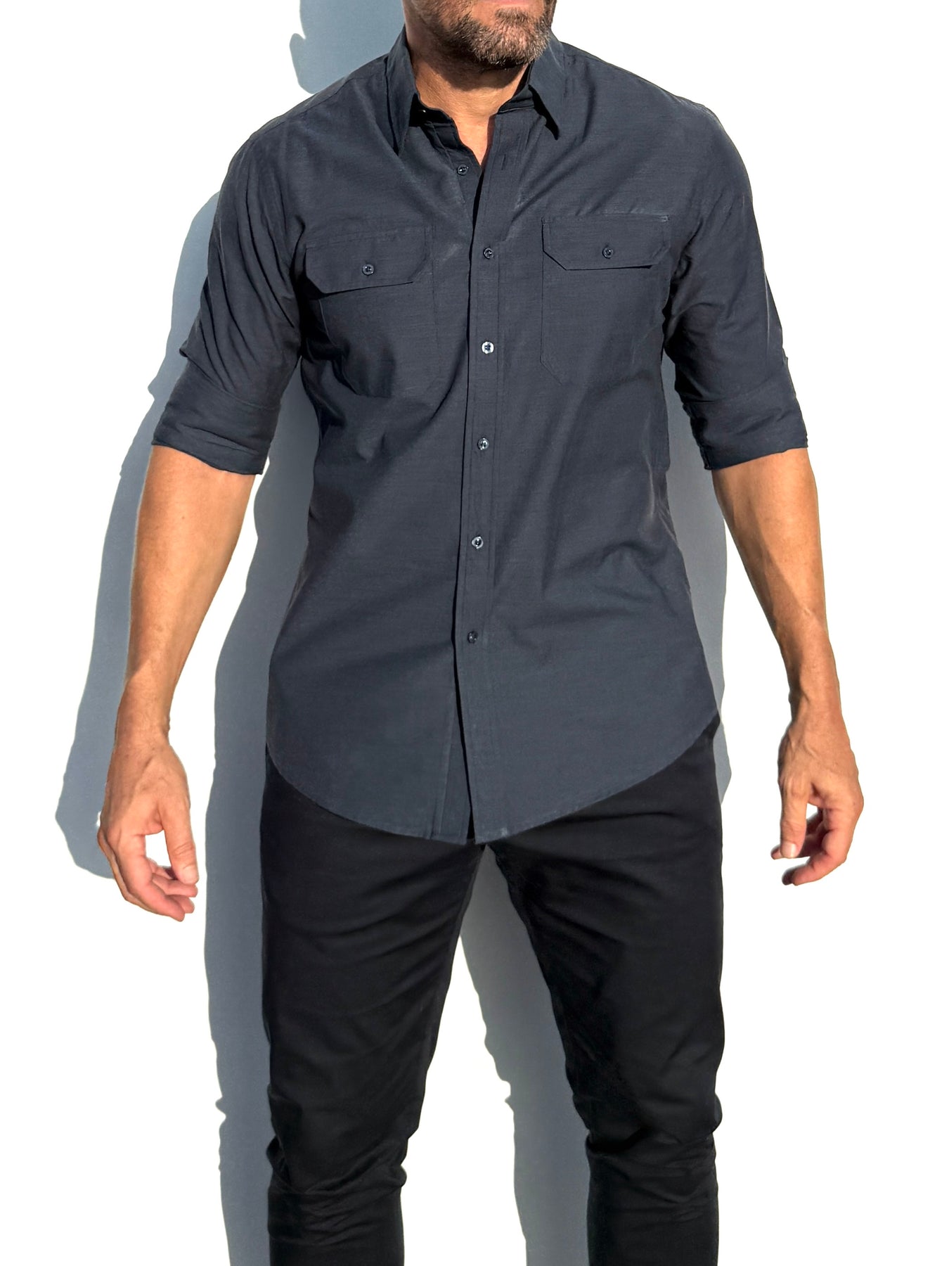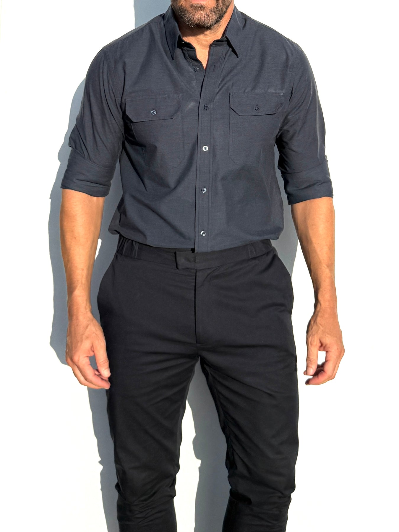 We studied the archetypal male form to find the ideal ratio between shoulders, chest, waist and hips and built our shirt around it. The zipper evenly distributes any tension and allows you to wear a closer fitting shirt, without looking like you're busting out of it.