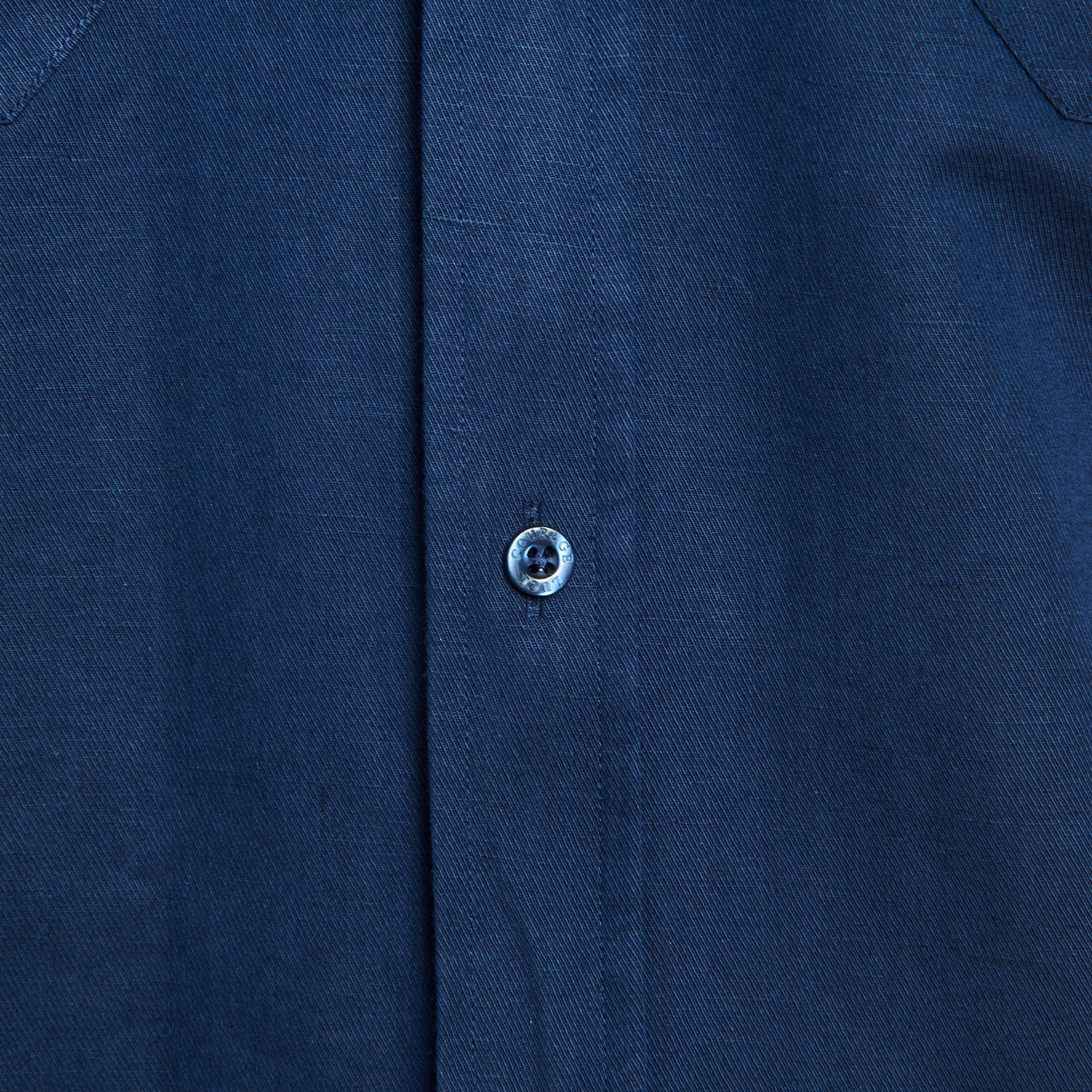 We used a 100% long staple cotton brushed twill that's durable but not heavy or stiff. It has a work shirt look with oversized pockets & a structure that holds its shape whether pressed or wrinkled.