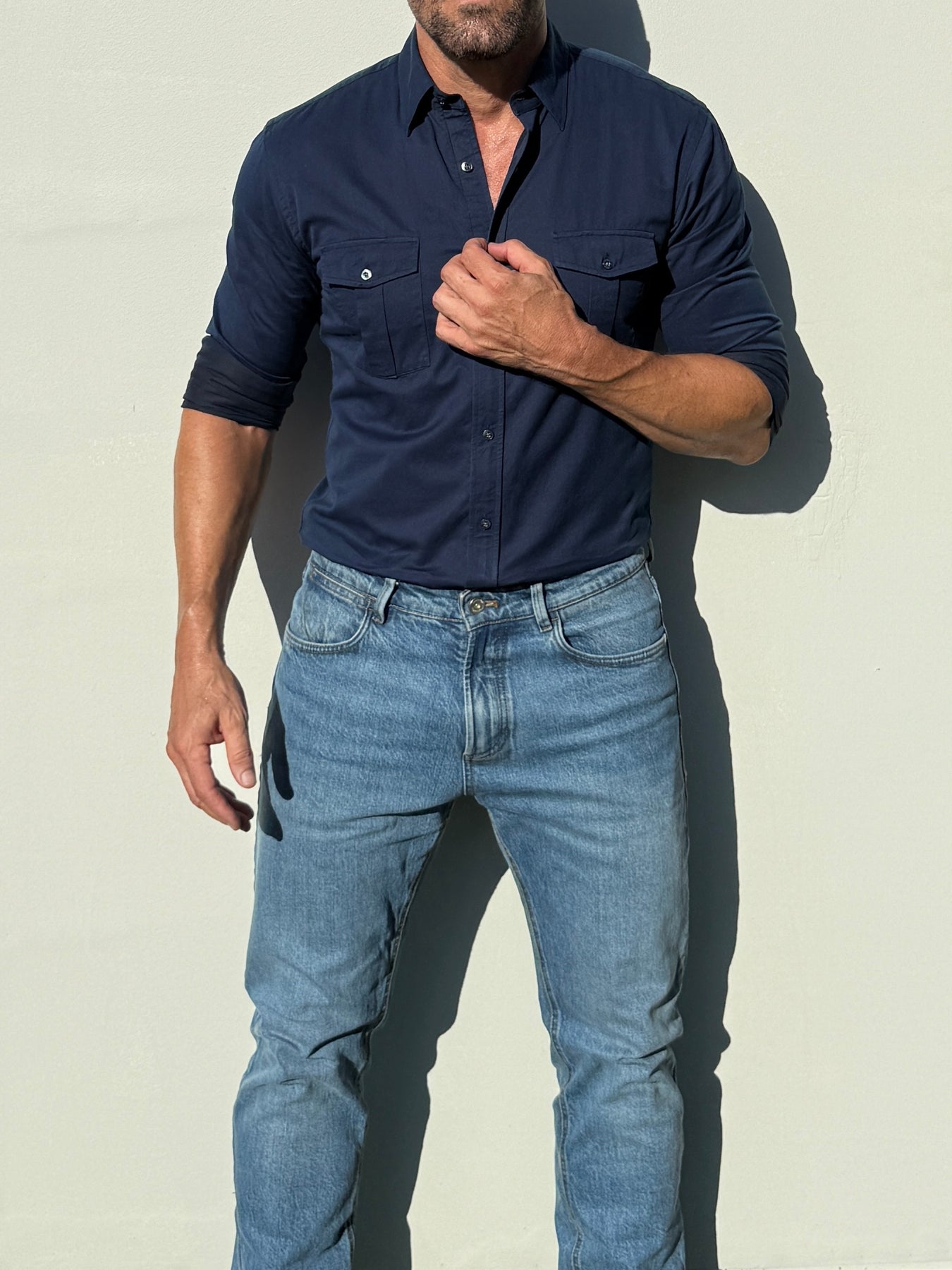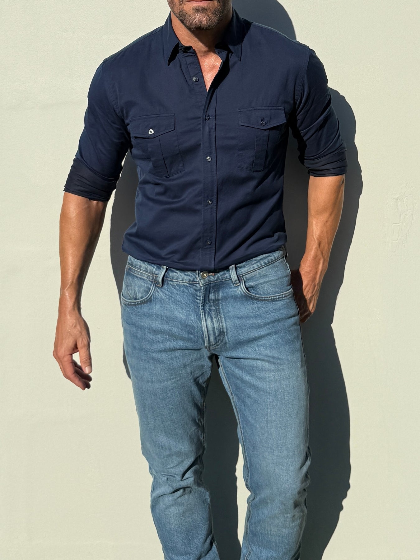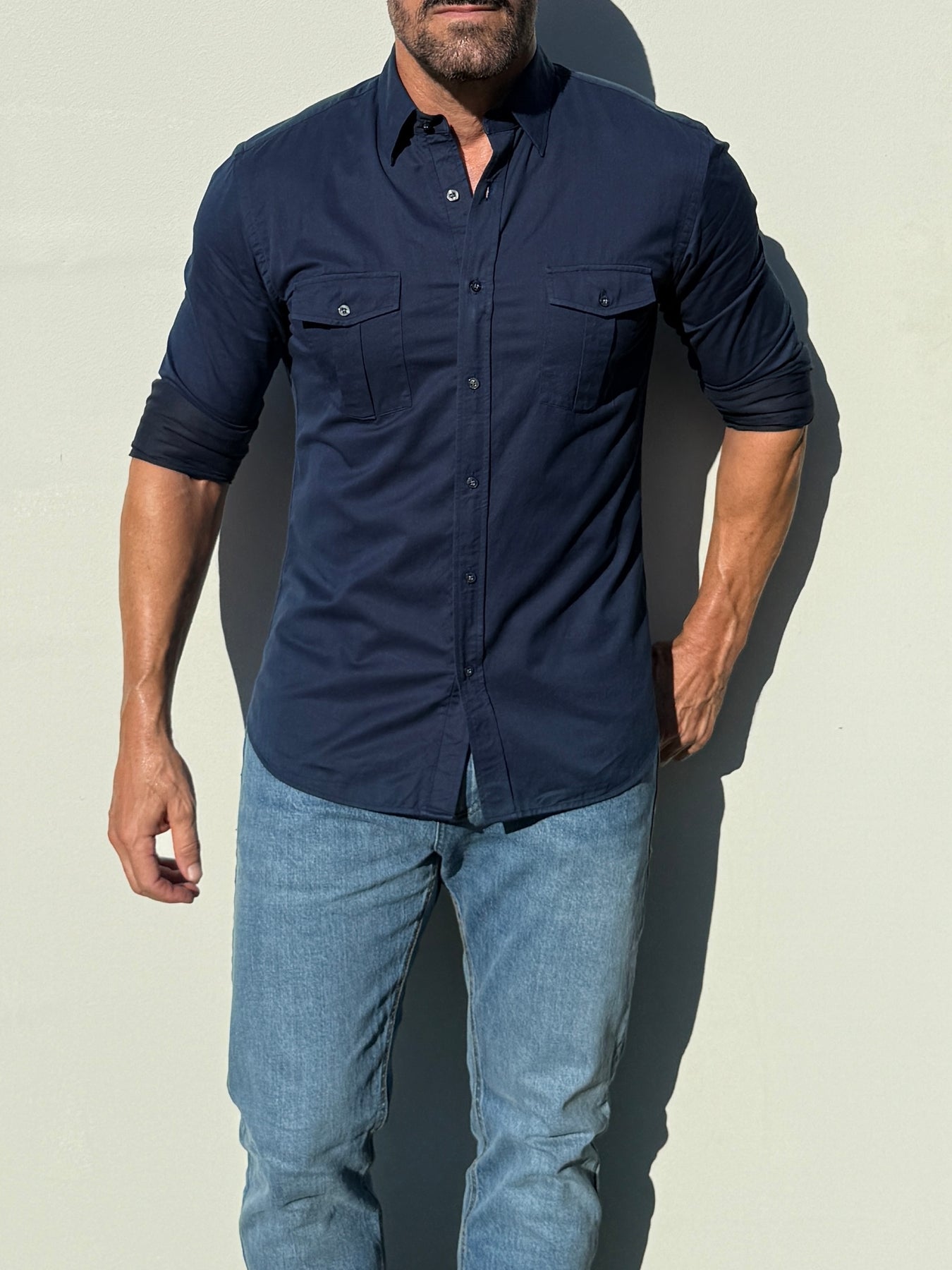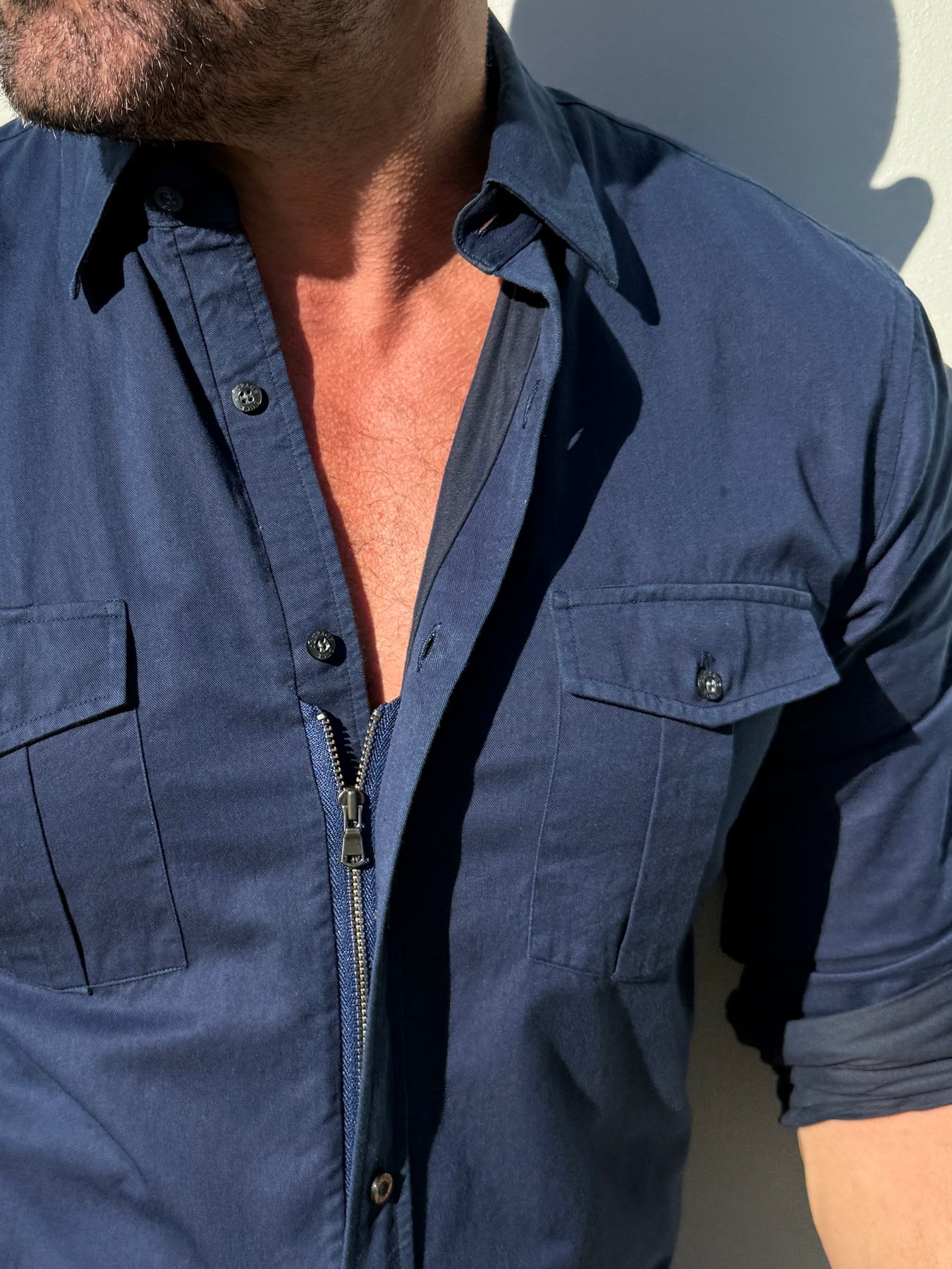 We studied the archetypal male form to find the ideal ratio between shoulders, chest, waist and hips and built our shirt around it. The zipper evenly distributes any tension and allows you to wear a closer fitting shirt, without looking like you're busting out of it.