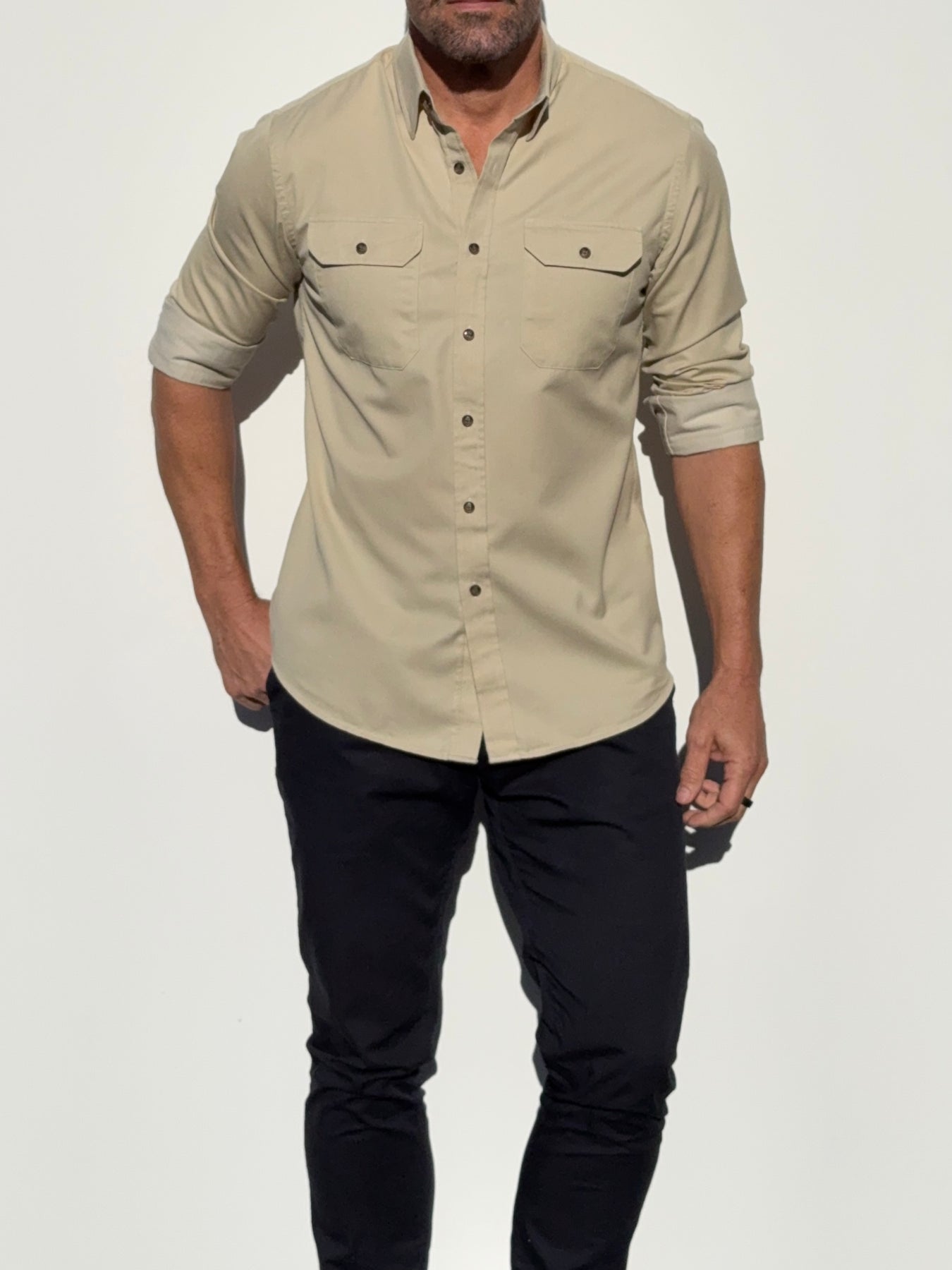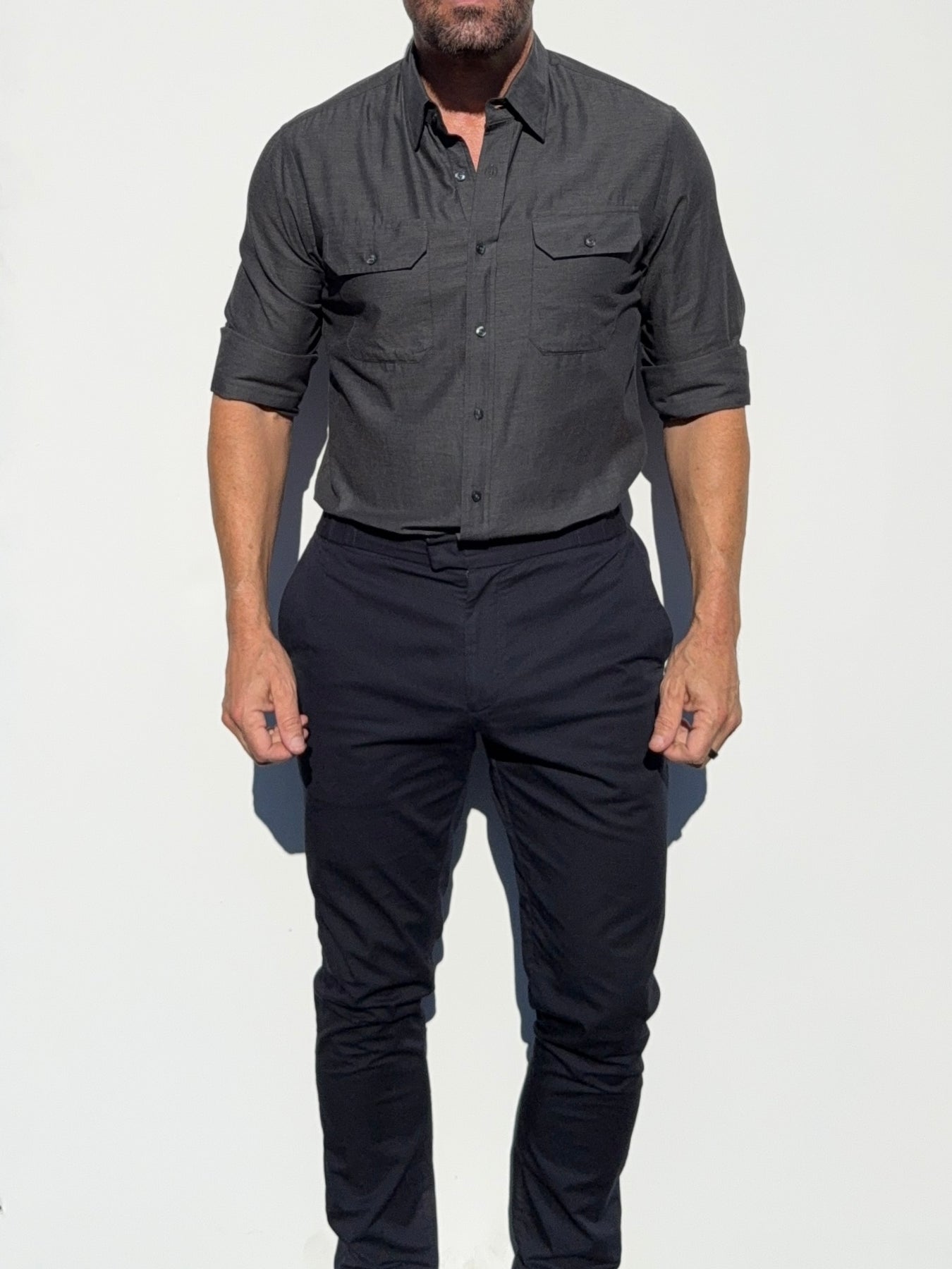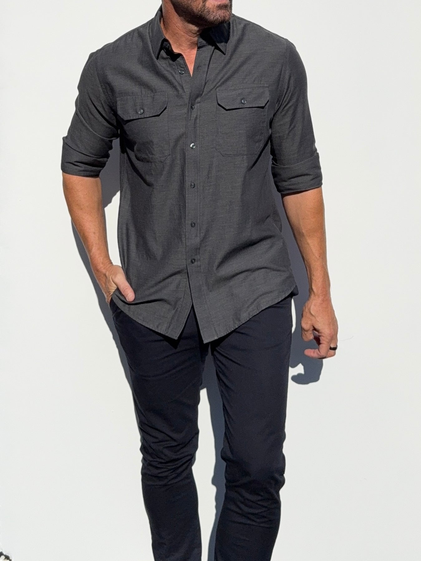 The Utility Shirt: Made with some ease built into the waist & hips- 3 inches & 1 inch respectively- our Utility Shirt is decidedly casual for a premium shirt.