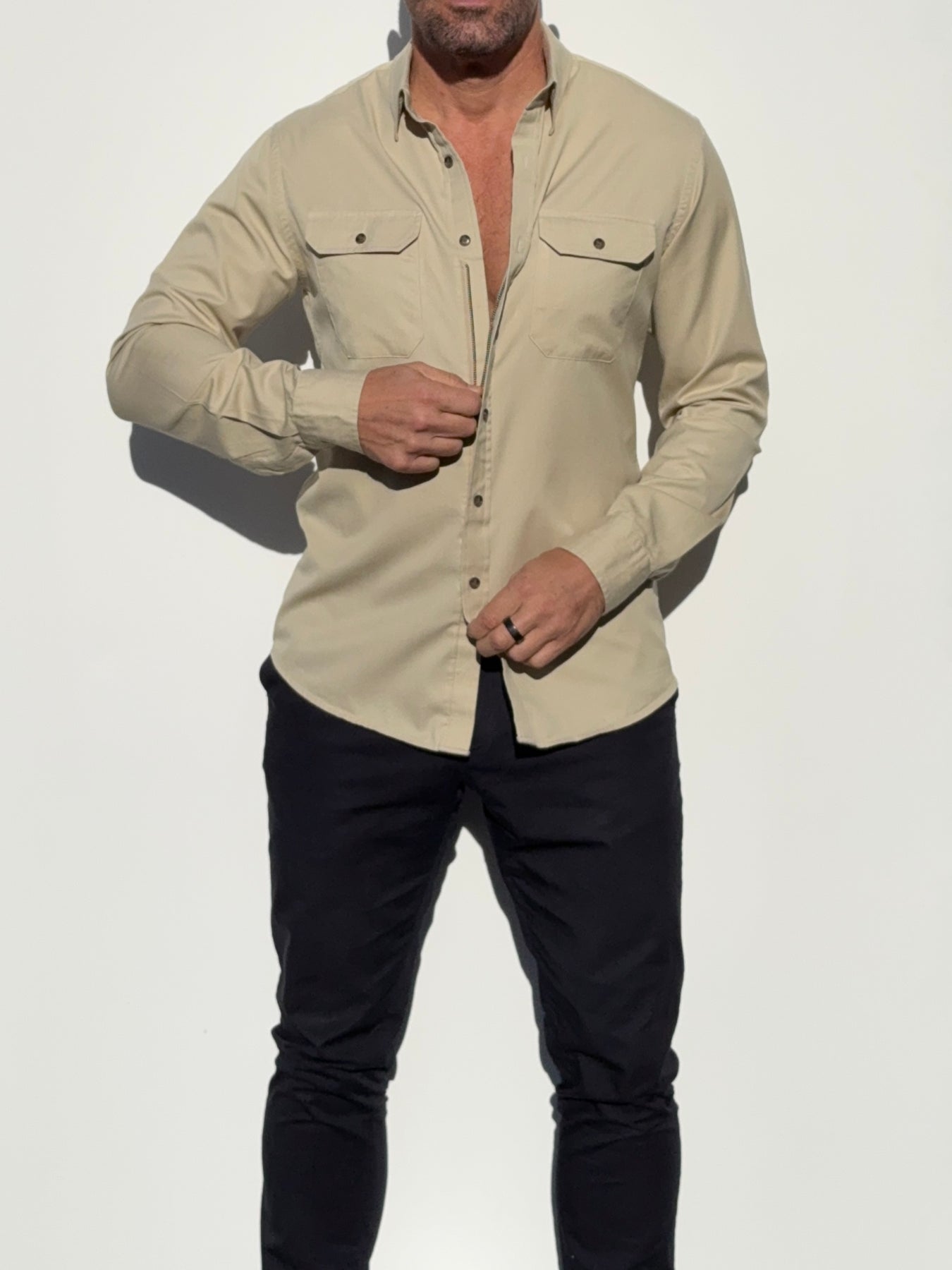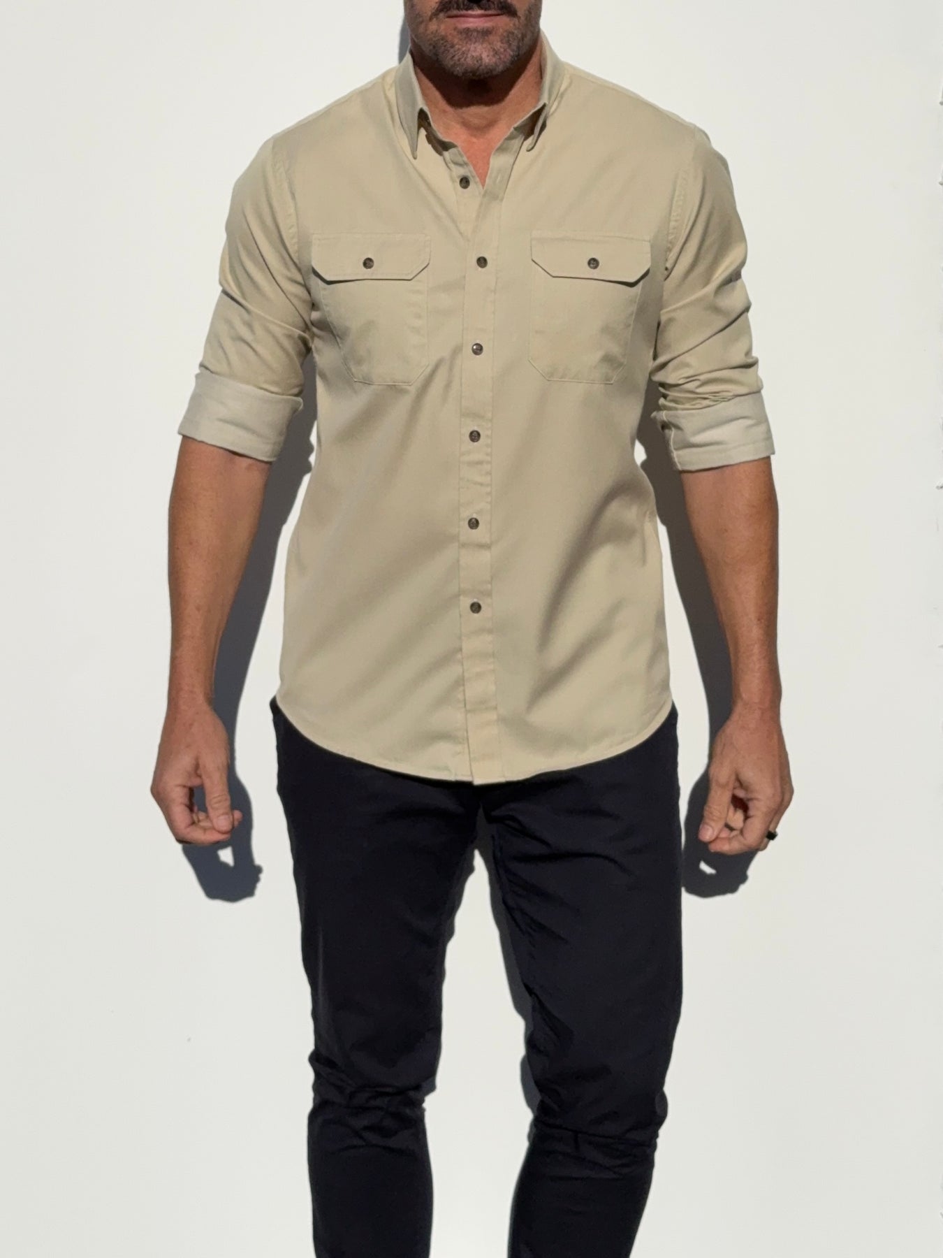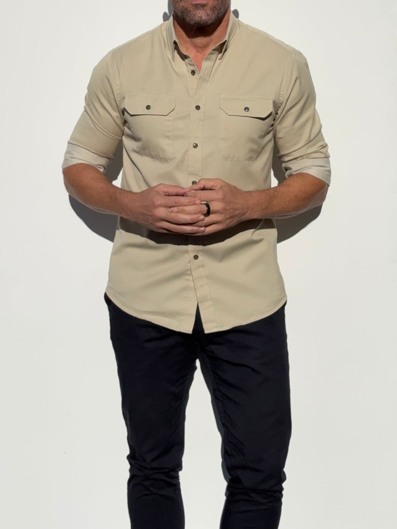 The Utility Shirt: Made with some ease built into the waist & hips- 3 inches & 1 inch respectively- our Utility Shirt is decidedly casual for a premium shirt.