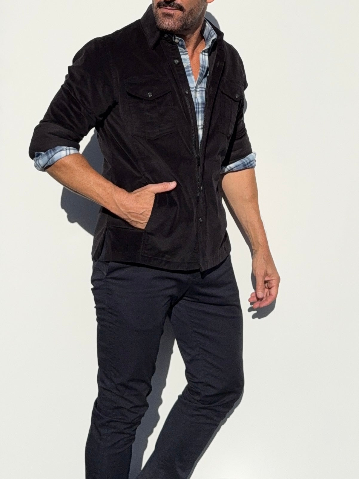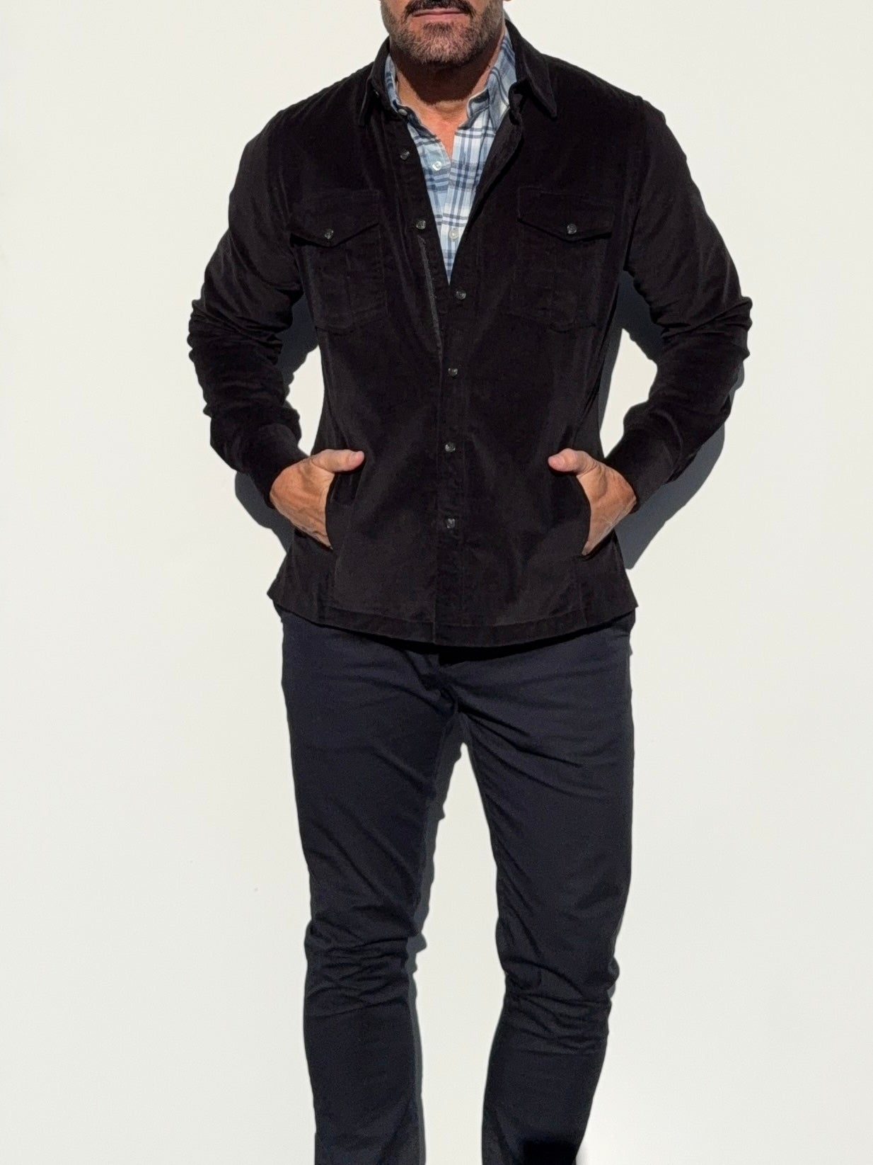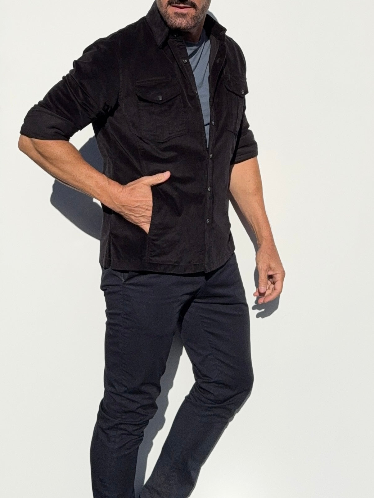 Made to be worn by itself or over another shirt or shirts, our Urban Legend was inspired by the side-pocketed shirts that tuk-tuk drivers wear in Bangkok. We used a heavier, velvety, narrow-wale corduroy with a little stretch built in for comfort & mobility.